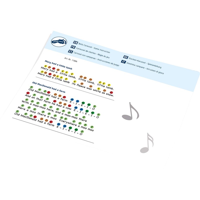 small foot Bell Carousel Coloured with Stand, 8 Pieces with Mallets and 8 Songs, from 3 Years, 11694 Toy, Multicoloured