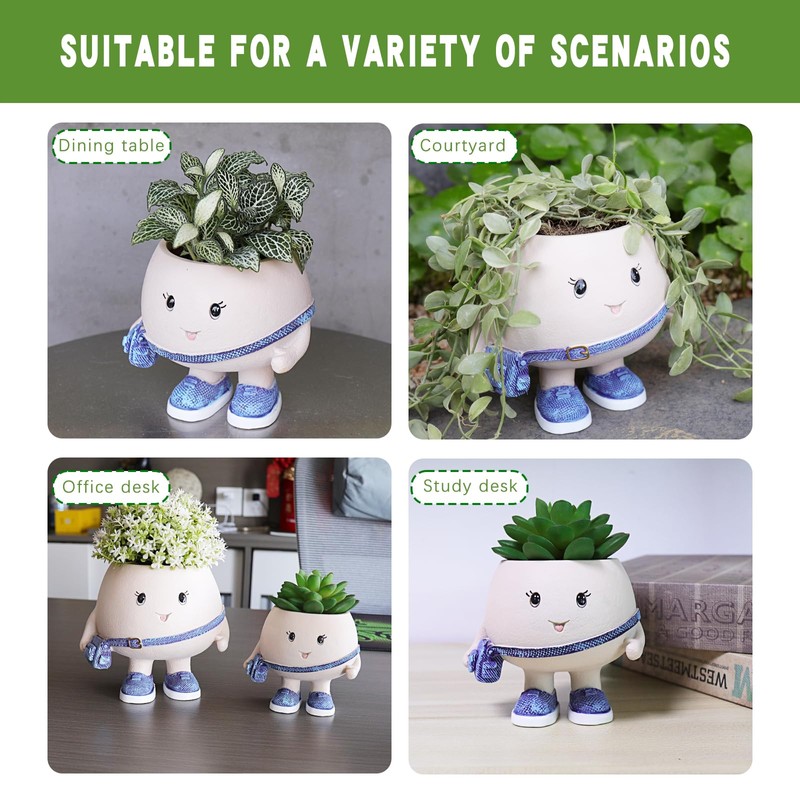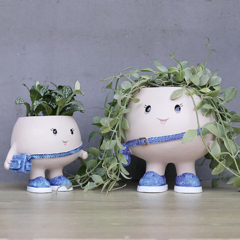 Bring small space decorating to life with this Mini Cute Character Planter Pot. Despite its tiny size, it brings huge charm! With a quirky, playful vibe and stylish purple accessories, it's an ideal planter for your favorite mini succulents or artificial plants. Whether it's a desk buddy or a gift for a friend, this planter spreads joy in every corner.