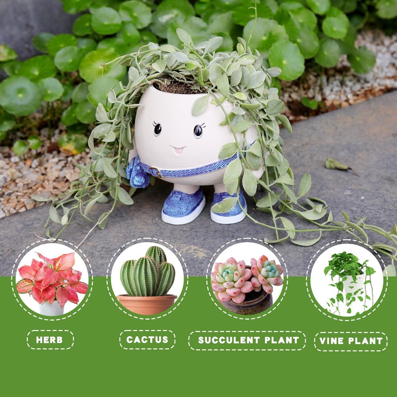 • Adorable Design with Personality – This large planter features a charming round character with a purple shoulder bag and matching shoes, ready to bring fun and warmth to your plant space