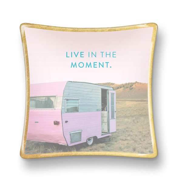 Small Glass Trinket Dish by Studio Oh! - Live in The Moment - 3" x 3" - Dish Tray with Unique Full-Color Art and Inspiring Quotes - Holds Jewelry, Change, Paperclips & Trinkets