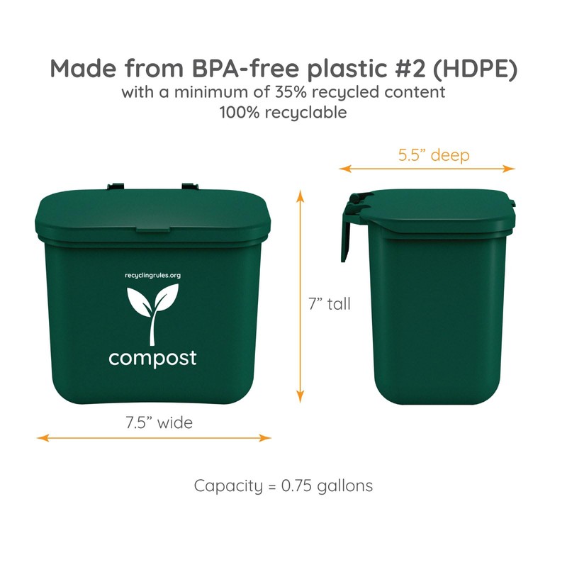 • SMALL BUT MIGHTY: This small green compost bin is the perfect solution for collecting food scraps for composting. It measures 7.5"W x 5.5"D x 7"H