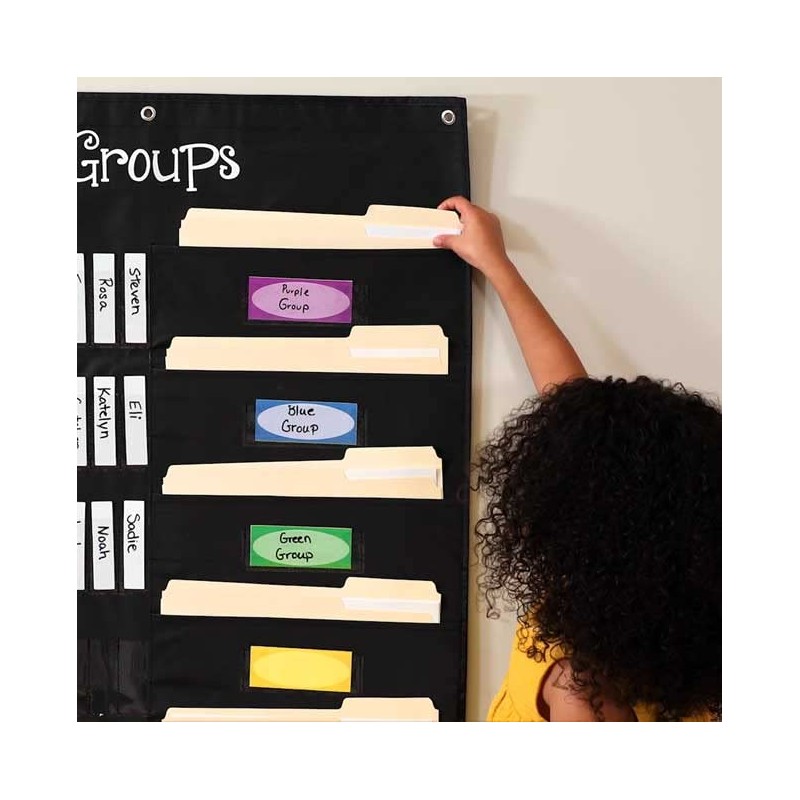 - EASY-TO-USE DESIGN: The group management pocket chart is simple to use in many ways. With pockets large enough to hold folders filled with group materials, movable name sticks and cards for giving instructions, this chart will help your small groups run independently.