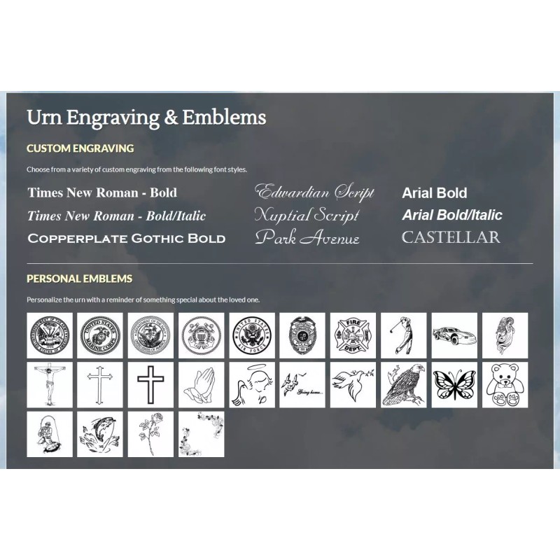 · Other Sizes Available? : This urn is also available in these cubic inch sizes: 22, 225, 450 (companion)