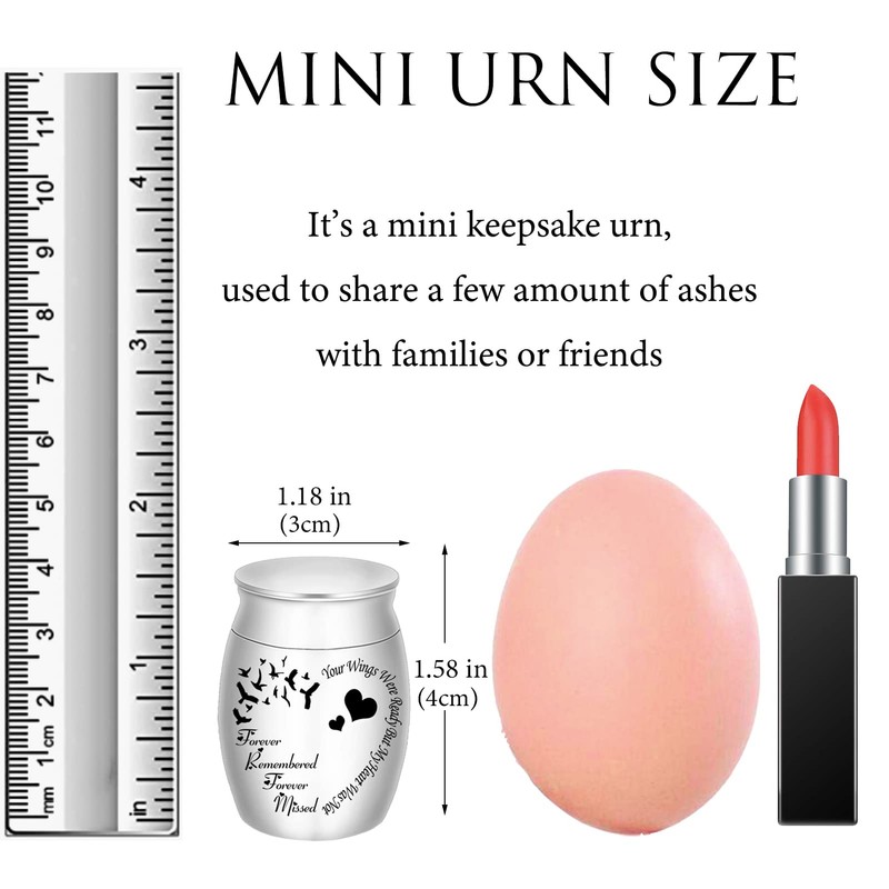 • 【CREMATION URN】: It's a small urn(1.57*1.18inches) designed for sharing a few amount of cremated remains ashes among family members or friends. This small urn for human ashes can hold ashes, flowers, hair, earth from a gravesite