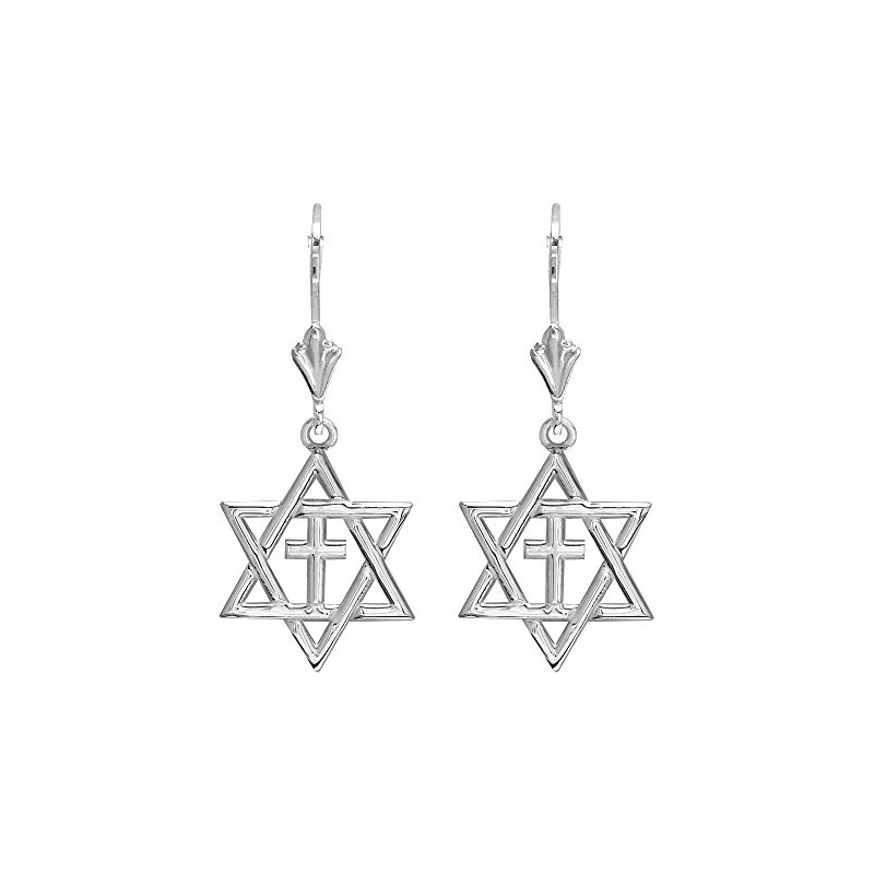 Small Messianic Star of David with Cross Charm Earrings in Sterling Silver