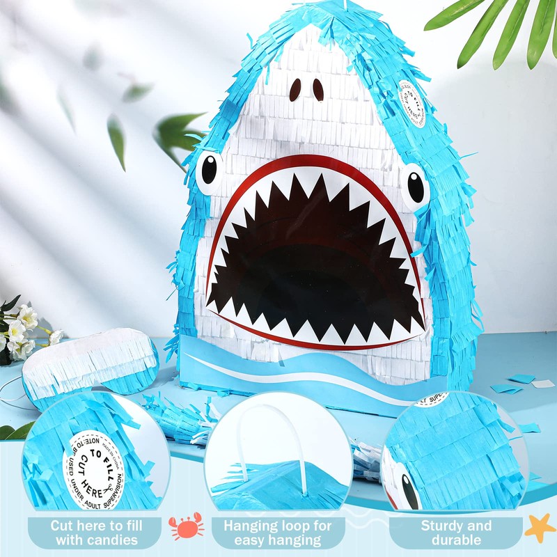 - You Will Get: the package comes with 1 piece of shark pinata, 1 piece of eye mask and 1 piece of bat, 1 pack of confetti, which can satisfy your decorative needs and playing game demands on your family gathering parties