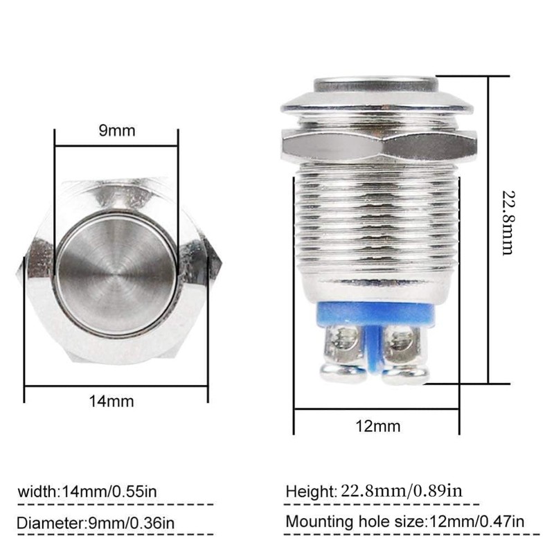 Small Momentary Switch 12 V Waterproof Metal 12 mm Start Button Momentary Switch Electric Switch