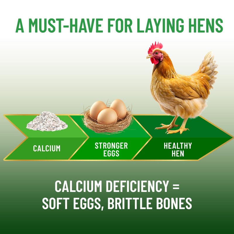 • Calcium Supplement- Laying chickens require additional calcium to ensure their health and the health/strength of eggshells they produce.