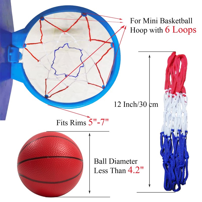 - 【For Mini Basketball Hoop】Our mini basketball nets feature 6 loops and measure 12 " in total length to fit all kids basketball rims for indoor and outdoor use. Fits rims measuring 8"-10.25" in diameter.