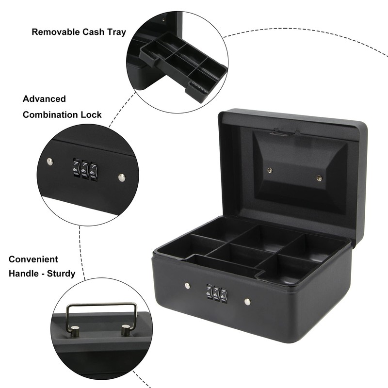 - DURABLE AND UNBREAKABLE: The cash boxes is unbreakable in our daily life due to strong metal material. Besides, the inner removable money tray is so sturdy built that you have no reason to worry about the security of your items.