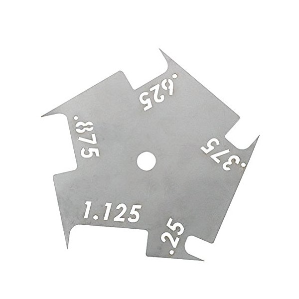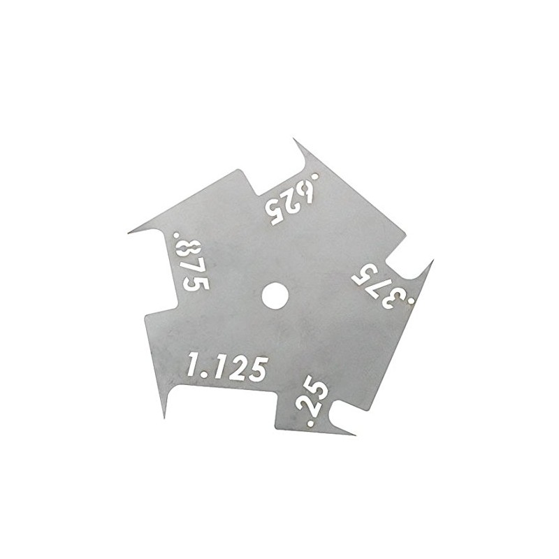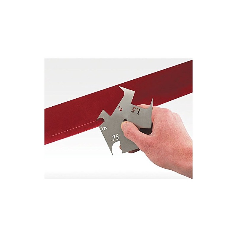 Simplify your sheet metal working job. Simply run the tool down the edge of your material allowing the needle to locate perfectly measured lines every time. Stainless Steel 24 gauge construction. Measures .25", .375", .625", .875", and 1.125".