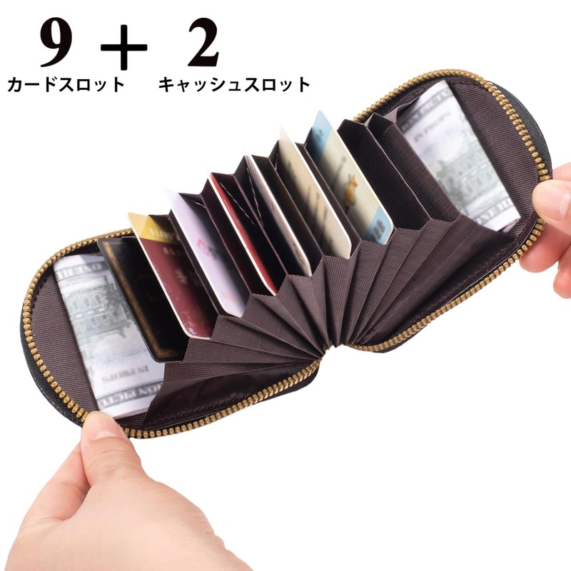 - 【Large Capacity】Small size but large capacity, can store up to 11 cards. With 9 built-in card slots and 2 cash slots, you can put credit cards, banknotes, coins, business cards, ID cards and so on. Clear layout makes it easy to find what you need
