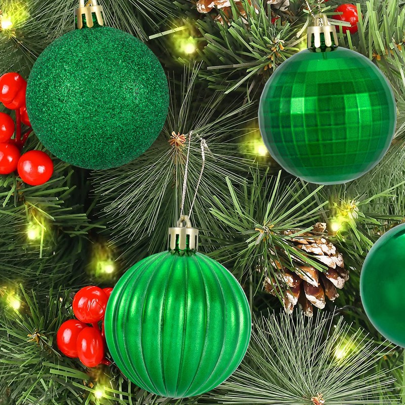 Small Size 28ct shatterproof Christmas Ball Ornaments in 4 Classic finishes for Christmas Tree Decoration (Green, 1.57“ Mini Size)
