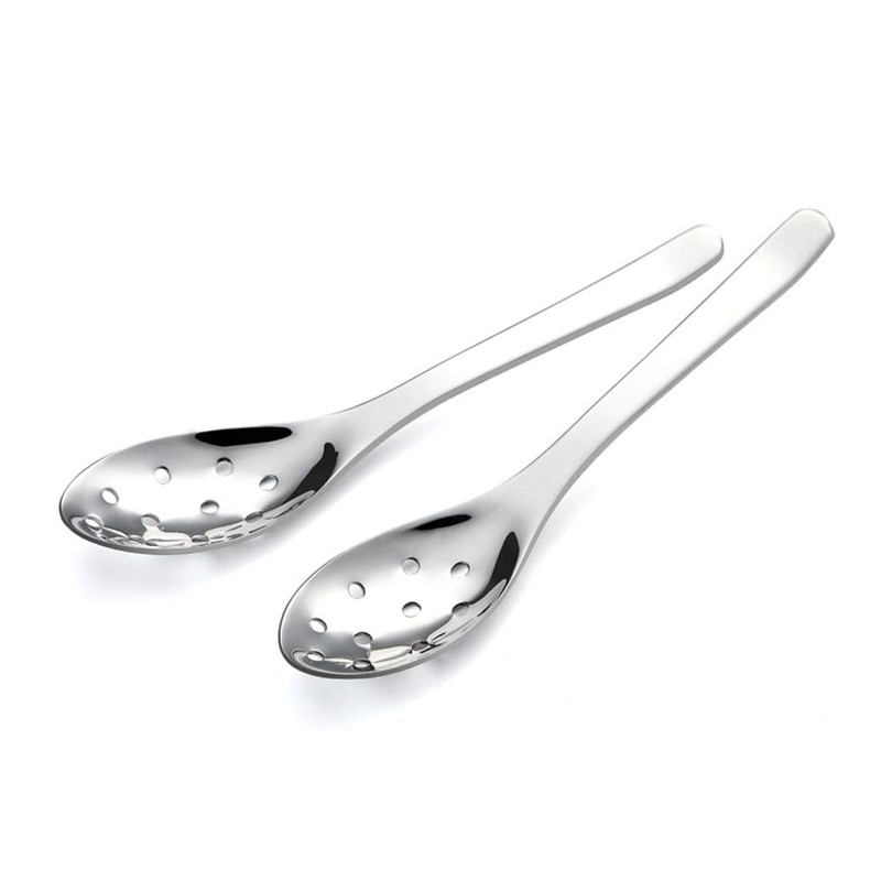 Small Slotted Spoons,AOOSY Modern Stylish Thick Heavy-weight Short handle Stainless Steel 10 Holes Durable Caviar Spoon for Soup Cereals Dips Curry Sauces Stews, Set of 2