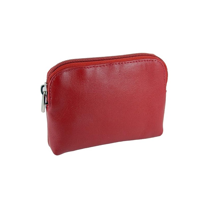 Small Soft Leather Credit Card Holder and Coin Zip Purse (Red)