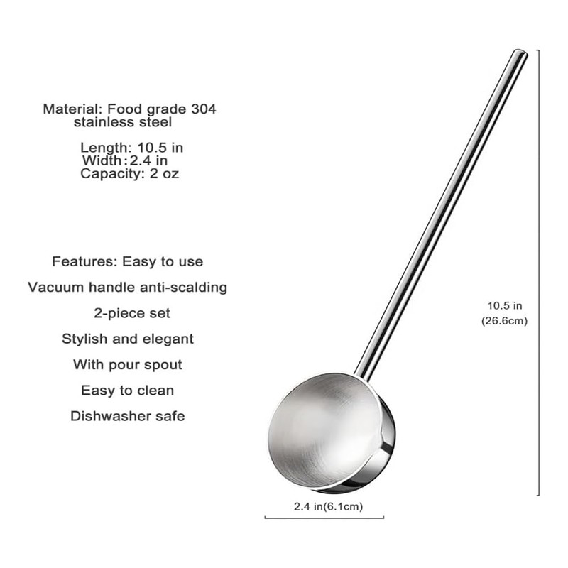 - User-Oriented Design and perfect Size: With a length of 10.5 inches and a 2-ounce capacity, these ladles are designed for seamless use and convenient storage. Its ergonomic design ensures a comfortable grip, making it an efficient tool for everyday culinary tasks. Servings have never been so timely and effortless with this game-changing ladle.