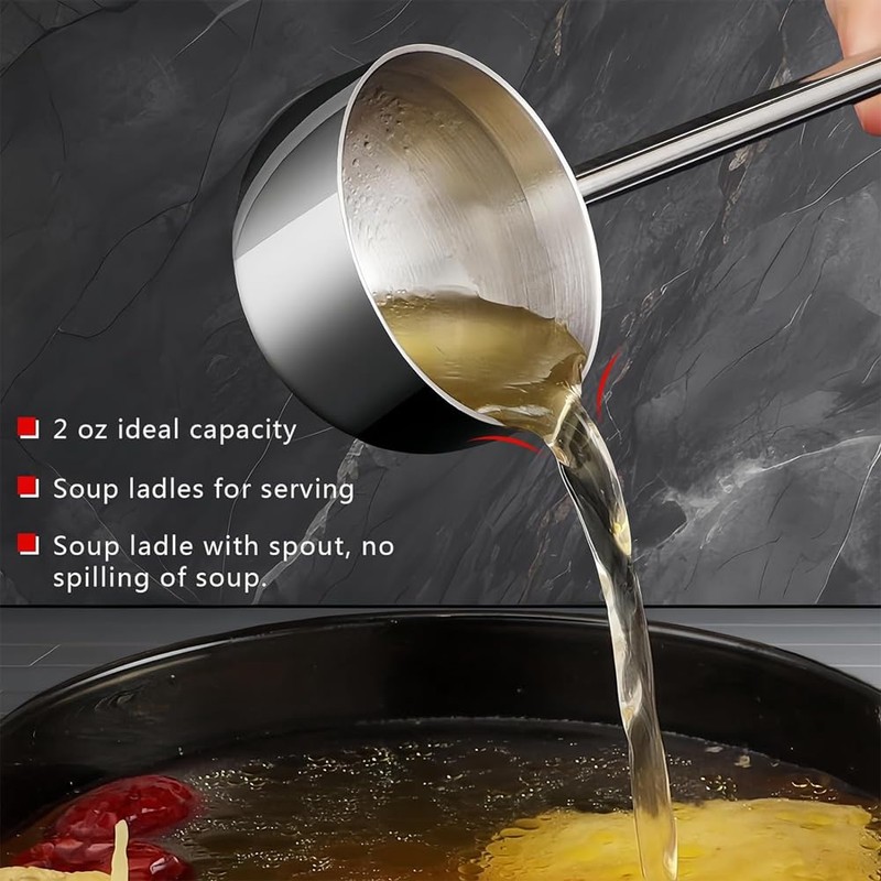 - A Kitchen Staple for Various Uses: This ladle set is tailored for an array of uses. Serving soups, scooping , drizzling sauces, and adding that to your dishes has never been easier. Enrich your kitchen and dining experience with this ultimate ladle that stands for versatility and convenience.