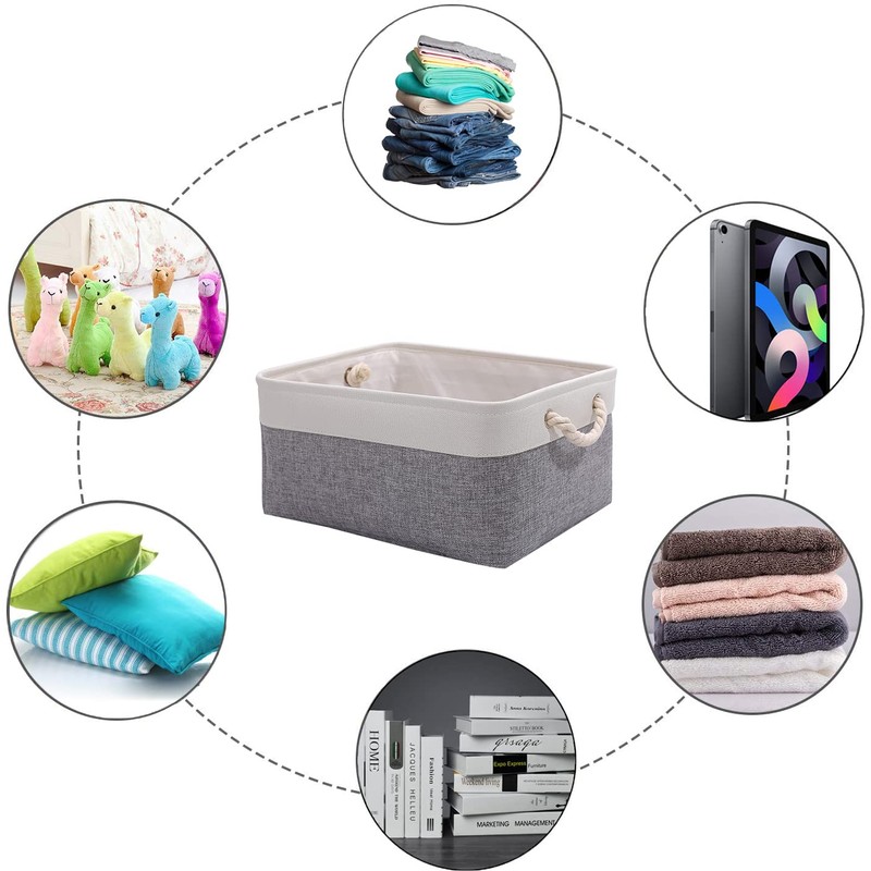 - 【Perfect Gift】— The minimalist design makes these canvas storage boxes simple yet exquisite, perfectly fit in your rooms layout and household decor, enjoy the relaxing ambiance of the soft grey and white scheme. They also make a lovely yet practical gift for friends and family for birthdays, weddings, housewarmings, or any other Gift-Giving occasion!