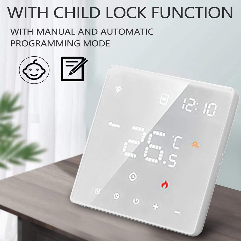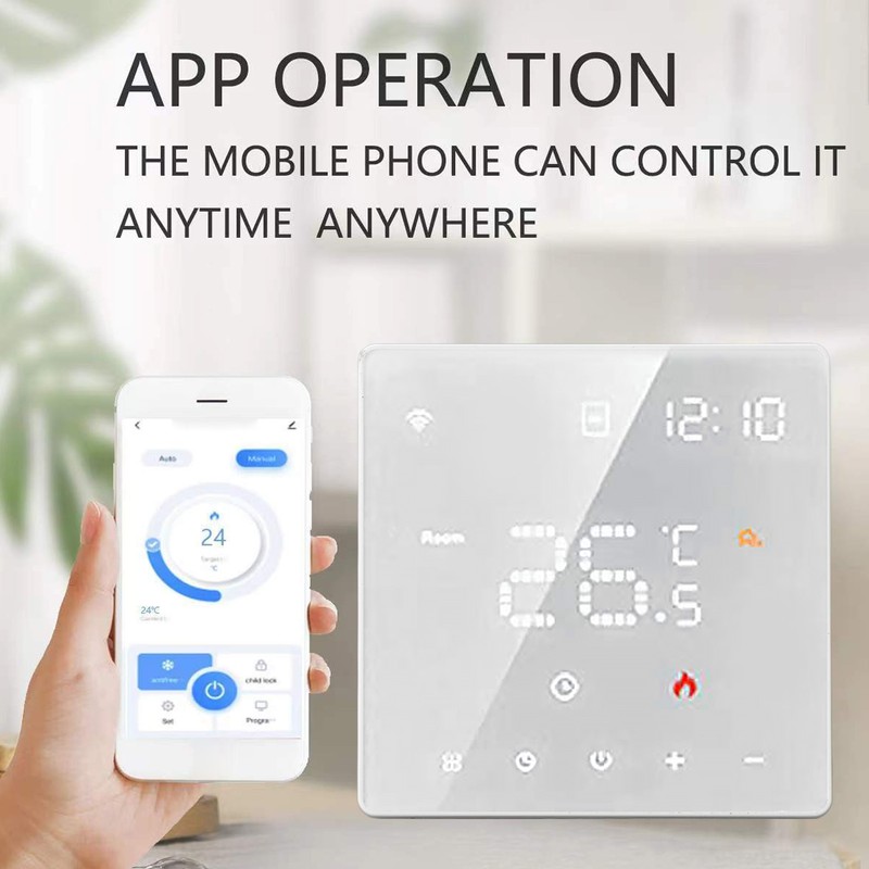 1、AUTOMATIC SENSING: This thermostat can automatically sense and adjust the temperature to maintain a comfortable temperature, with a room temp range of 5‑70℃. 2、GOOD COMPATIBILITY: This intelligent thermostat is suitable for 90% home temperature control system, and is compatible with more heating and cooling systems. 3、SWITCH TOUCH: The temperature controller adopts intelligent switch touch operation, which is convenient and practical, greatly improving work efficiency. 4、FLAME RETARDANT PC: The thermostat shell is made of flame retardant PC material, which is resistant to high and low temperatures, and has a long service life. 5、IP20 PROTECTION: This smart temperature controller has an IP20 protection grade, and can be used in various indoor environments, with good adaptability.