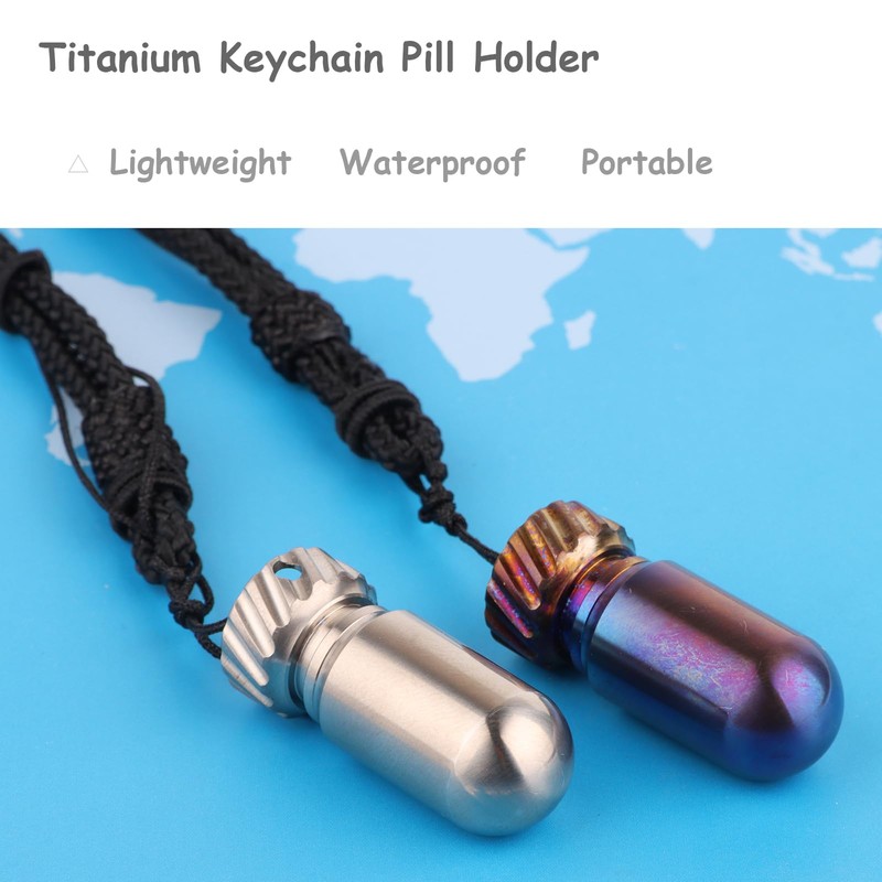 Small Titanium Pill Box Keychain Waterproof Portable Pill Box for Camping Travel