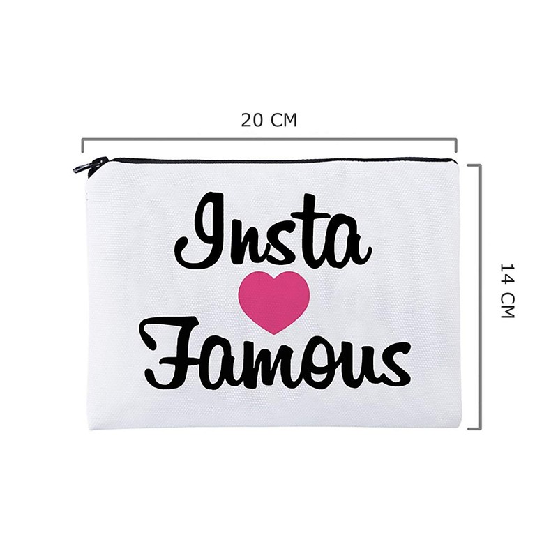 - Original print motifs with fashion statement – (e.g. Insta Famous, Flawless, Face , Perfect Lashes, etc.) made of soft and easy-care polyester, metallic zip at the top for easy opening and closing.