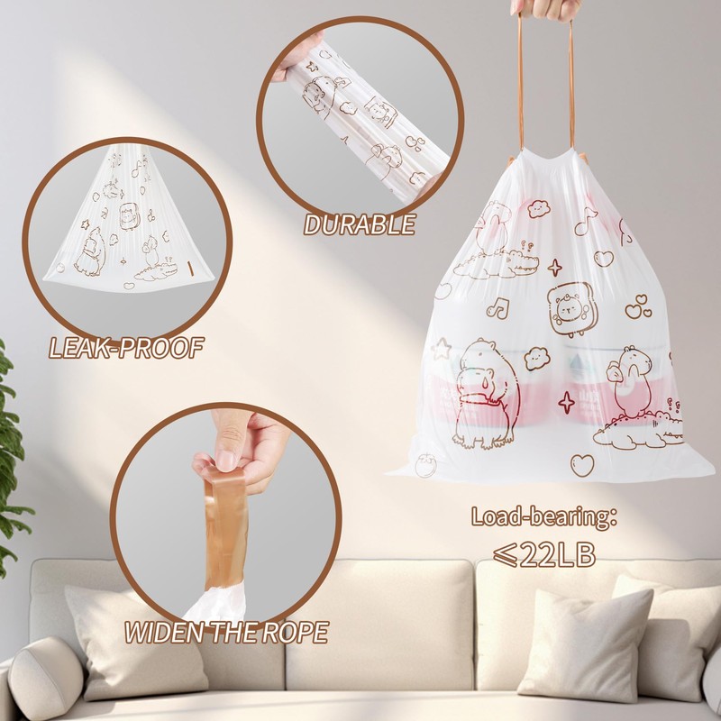 - Cute and Beautiful Design: Our garbage bags are printed with cute and good-looking patterns, which is different from other garbage bags on the market, adding a different visual experience to your daily storage