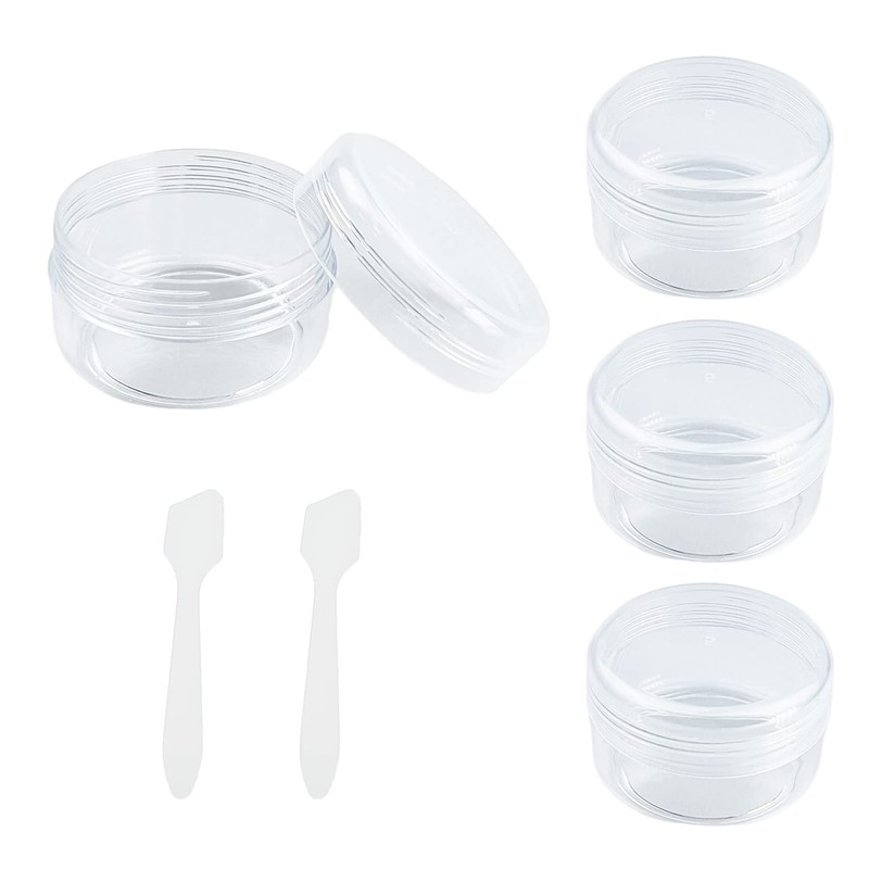 - What you Get: You will receive 4 clear small containers with lids (capacity: 30ml) and 2 mini spatulas, you can fill cosmetics and toiletries for trips or store nail art glitter and beading gadgets, etc., with transparent colour, you can directly see what is in it