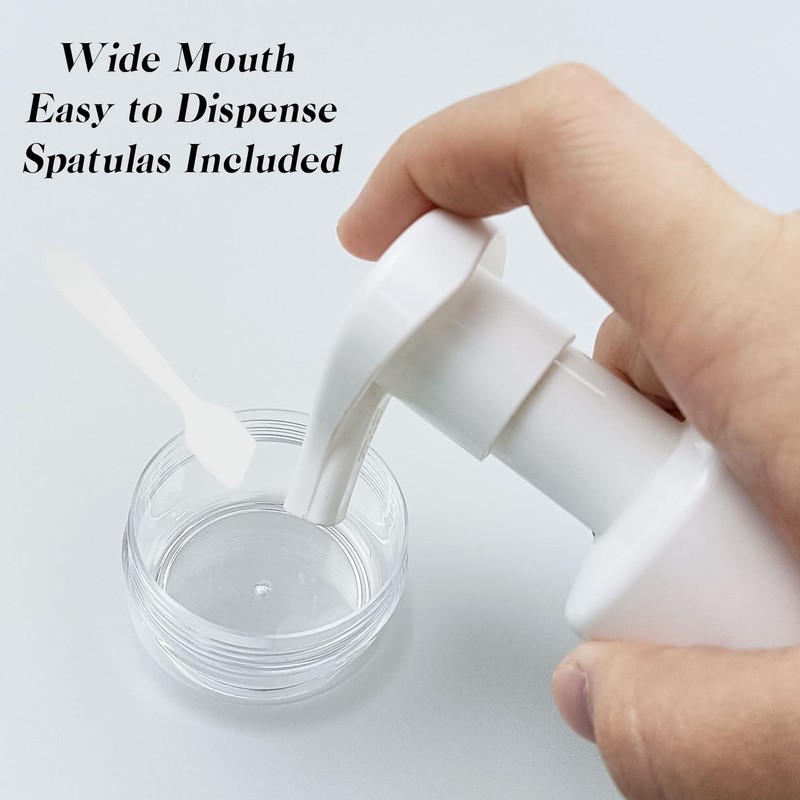 - Easy to Use: wide mouth, you can easy to fill the toiletries in the small travel jars, come with 2 spatulas, you can quick and safe take creams or lotion from the container