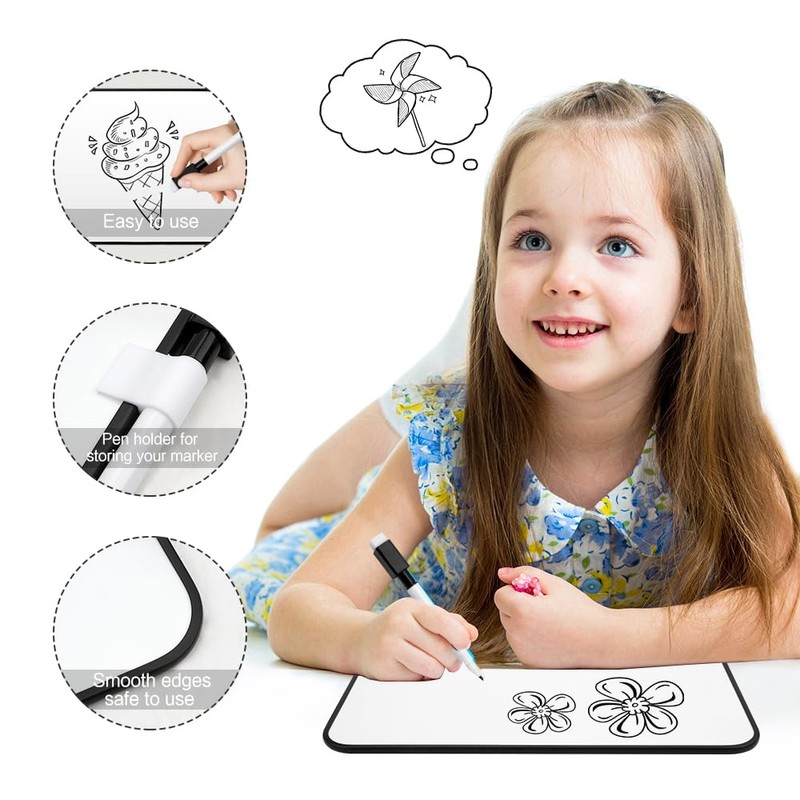 - 💐Flexible Multi-Use: This portable whiteboard is lightweight, small and easy to carry. It can be used comfortably at anywhere. Dry erase board is perfect for children's doodling, game counting, study guides, drawing and more. A good choice for schools, homes, offices, small group instruction, kitchens, dormitories, and classrooms. Great for teachers, students, families and children's instruction.
