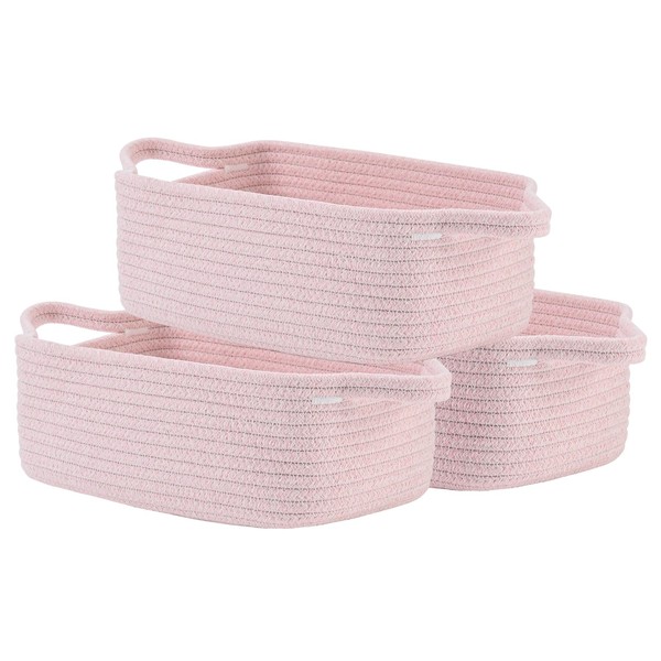 Small Woven Basket, 12 x 8 x 4.5 Inches, Small Storage Baskets for Organizing, Gift Baskets Empty, Cute Small Rope Shelf Closet Storage Bins Baskets for Shelves, Dog Toy Basket, 3 Packs, Light Pink