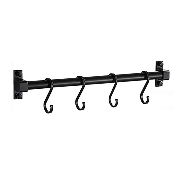 Smallboutique Black Aluminum Utensil Holder Rack, Wall Mounted Hanging Rack with Removing Hooks for Kitchen and Bathroom (30cm)