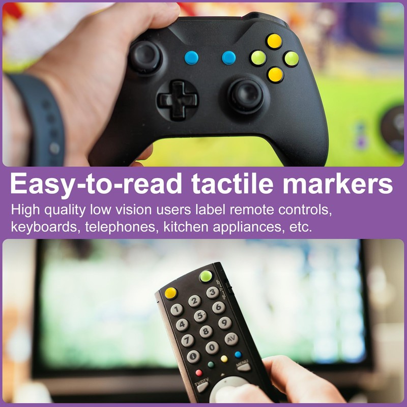 - Premium Material: These tactile dots are made of premium silicone, soft to touch, sturdy. The self-adhesive backing allows them to stick firmly to smooth surfaces like plastic, glass, and paper without leaving residue.