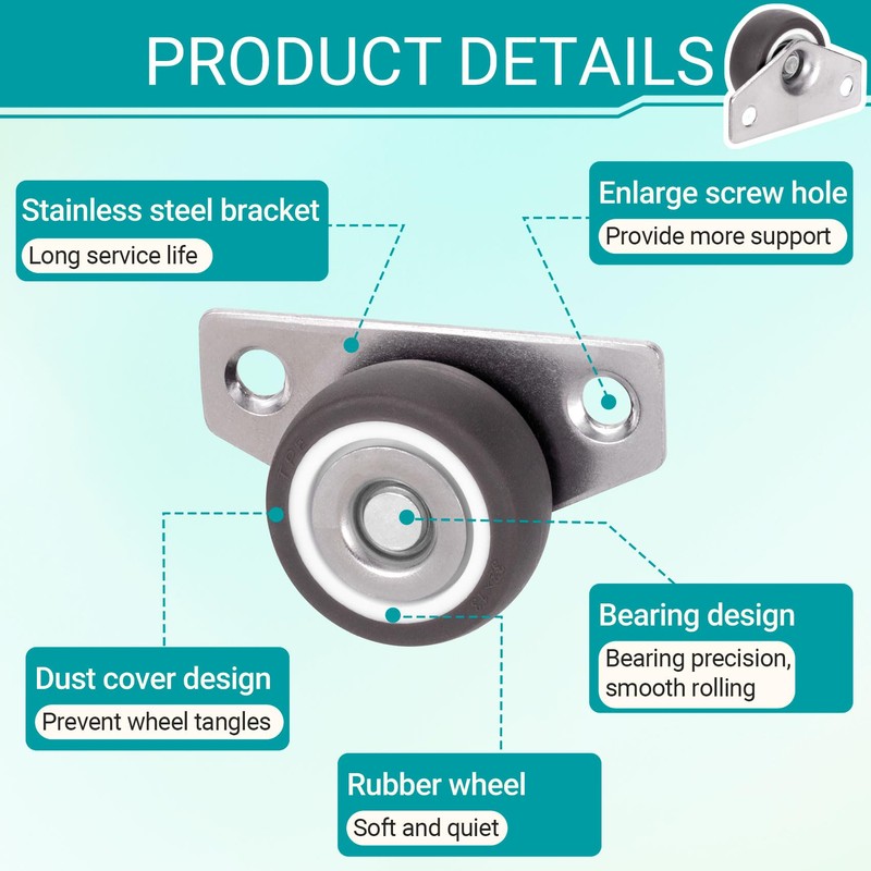 - Quiet Rubber Wheels: The small caster wheels are made of soft rubber, elastic and wear-resistant, which can help furniture move smoothly without any noise and prevent your floor from scratching