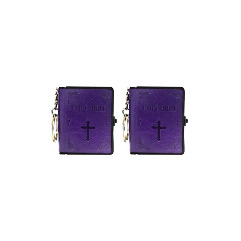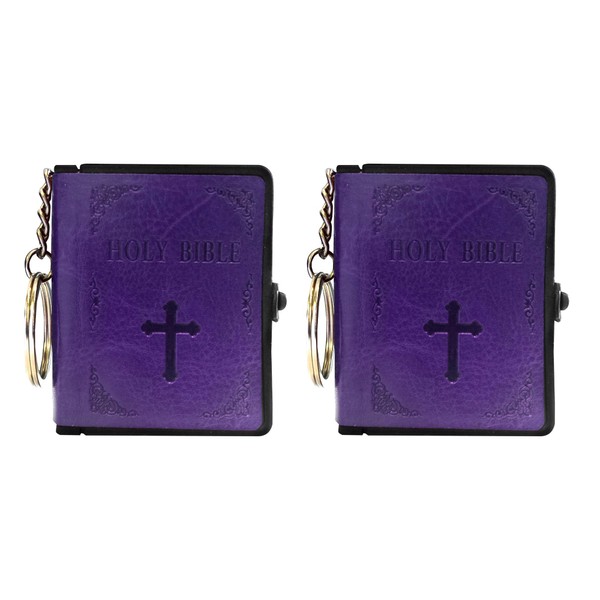 Smallest Leather Bible Keychain, With O Ring to Attach to Wallet, Keyring, Bag or Purse, Pack of 2, Violet