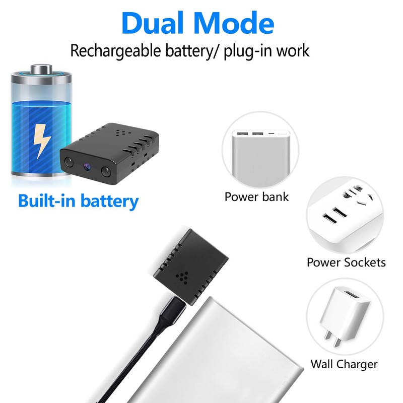 - ✔️【Built-in battery】— MiWIFICam wireless camera with built-in lithium battery, outdoor continuous power supply for about 1.5 hours.USB port can be connected to USB devices such as mobile power, USB plug, etc. for unlimited power supply.