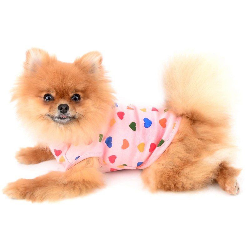 SMALLLEE_LUCKY_STORE Girls Heart Print T Shirt Small Medium Dog Cat Sleeveless Cotton Tops Summer Yorkie Chihuahua Valentine's Day
