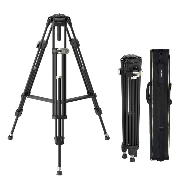 - Stable Support & Durable: Professional video tripod designed with high-strength aluminum alloy and double-row tubes to provide better stability for the video tripod.The tripod weight 7.5bs(3.4kg) with maximum load to 33.1lbs(15kg).