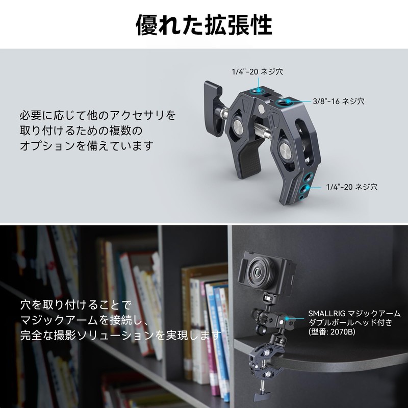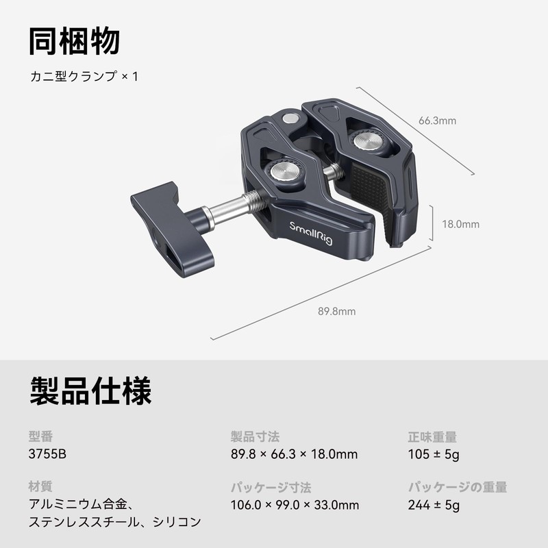 SmallRig Crab Scissors Clamp with 1/4"-20 3/8"-16 Screw Hole, Load Capacity: 7.7 lbs (3.5 kg), Applicable to Camera Accessories, 3755B