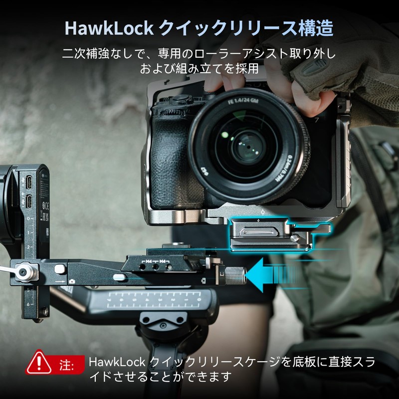 - 【Quick Release Construction】HawkLock H38 quick release clamp for the Arca on the upper part features a dedicated roller assist disassembly and assembly and self-locking one-button slides, so there is no secondary reinforcement. The quick-release plate for Arca at the bottom has a dedicated slot for quick installation of the RS 3 mini stabilizer