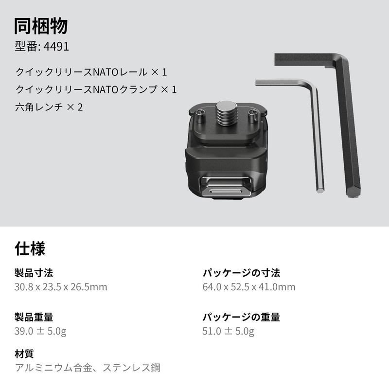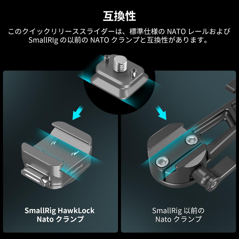 - 【特許取得済みの独占 QR スライド構造】このクイックリリース プレート キットは、上部の QR プレートとベースで構成されており、ボタンを 1 つ押すだけで、NATO レールを両方向から溝にスライドさせ、ボタンを放してロックします。NATO レールは、以前の NATO クランプ アクセサリとも互換性があります。
