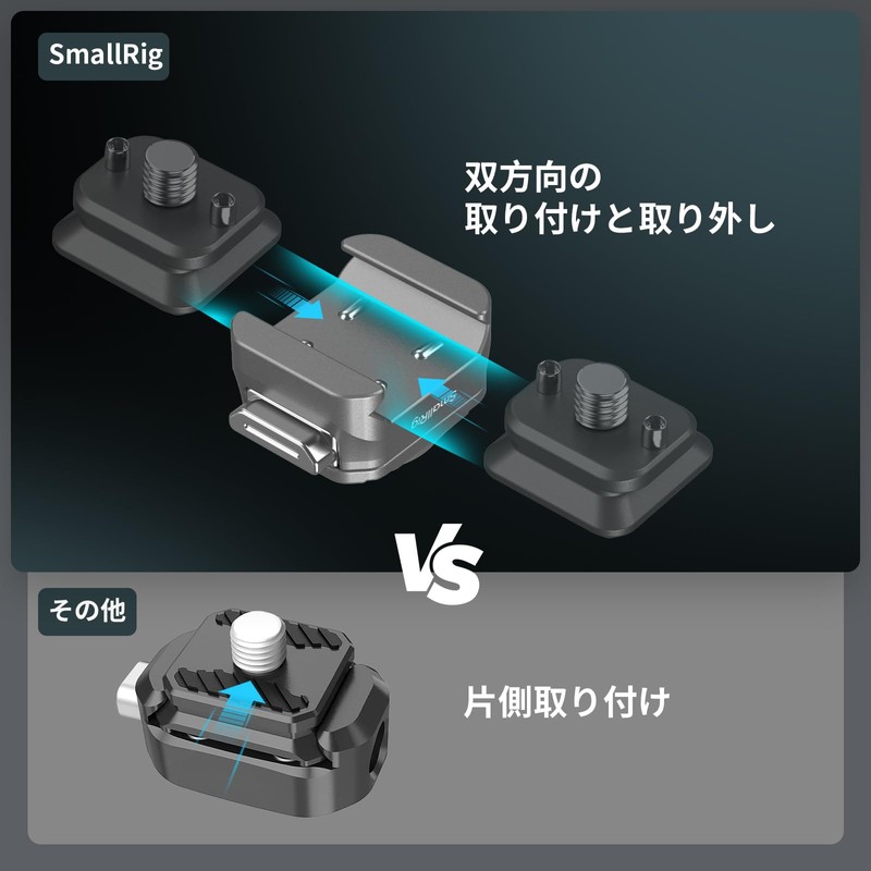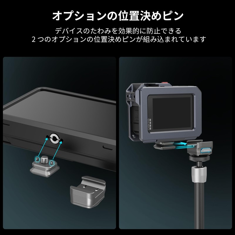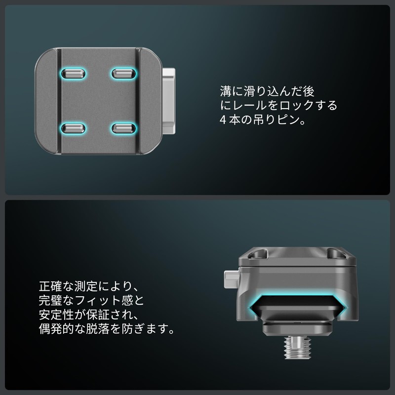 - 【幅広い互換性】1/4"-20 ネジを備えたトップ プレートは、軽量ミラーレス カメラなど、ほとんどの機器をサポートします。モニター、アクションカメラなど。さらに、オプションの位置決めピンが 2 つ付いており、SmallRig アクションカメラケージ (ID: 4119B、3084C、4088B) と併用するとたわみを効果的に防ぐことができます。マウントプレートキットは最大 5kg まで保持できます。