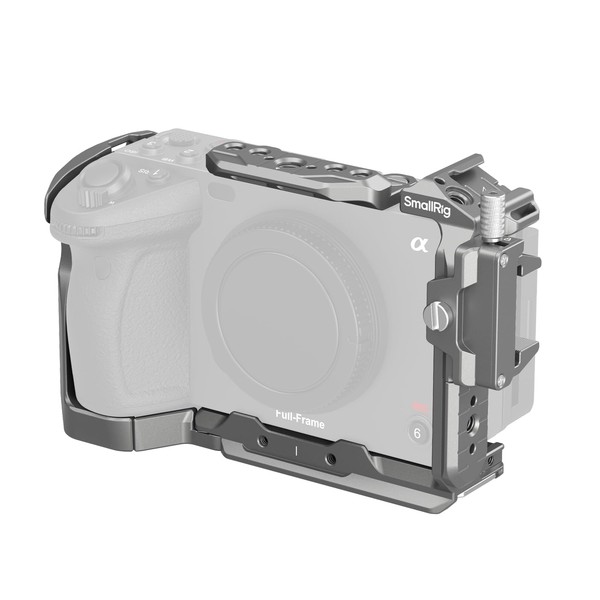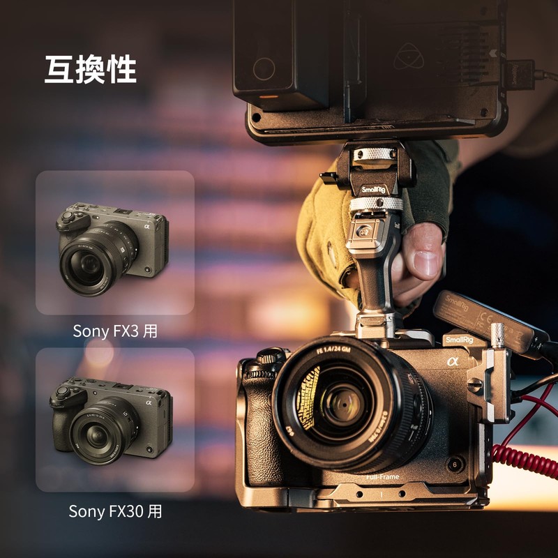 The SmallRig HawkLock Quick Release Cage Kit for Sony Compatible FX3 / FX30 4770 is designed to protect your camera and provide accessory mounting points. Modular cage consists of a NATO rail and a U-shaped cage. The NATO rail is secured with two 1/4"-20 screws on the top and can be removed to attach the original XLR top handle. The U-shaped cage is secured with 1/4"-20 screws on both sides and bottom to prevent twisting and cushion against scratches. The battery door has a hinged arm that fits the camera curve for improved pinky grip. HDMI dedicated cable clamp protects interface and ensures stable signal transmission. Patented in-house developed quick release construction (named HawkLock) covers cold-shoe, NATO rails, and Arca-Swiss plates and used in conjunction with HawkLock Eco Accessories such as top handle 4483, side handle 4485, and Arca-Swiss clamp 4486 for smooth sliding and self-locking and improves the efficiency of disassembly and assembly. At the same time, it is also compatible with traditional cold shoe, NATO clamps, and Arca Swiss Echo accessory clamps. In addition, the cage has a 1/4"-20 threaded hole, 3/8"-16 positioning hole for ARRI, 1/4"-20 positioning hole, QD socket, strap slot, and can be expanded with other accessories such as Magic Arm 3873, Top Handle 2165C, Rod Clamp 3598, QD Shoulder Strap 3848, Shoulder Strap PSC282428 and more to create professional projects. A magnetic wrench is also included for easy assembly and disassembly.