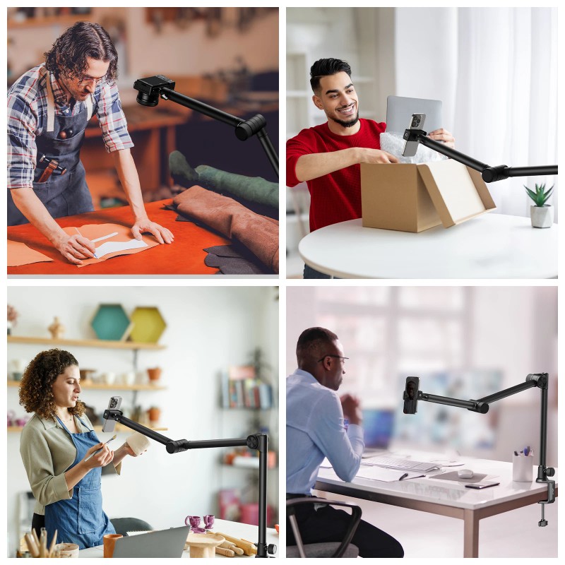 - Wide Accessory Expansion: This live desktop mount stand integrated with anti-deflection ball head with a 1/4"-20 screw to ensure flexible adjustments, and also come with a phone clip and 10 cable ties for organizing equipment cables, ensuring a clean and tidy desktop.