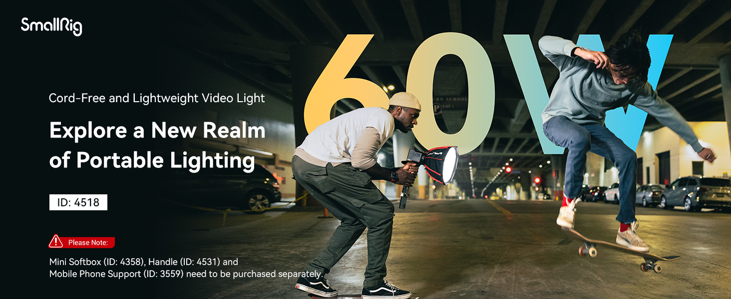 - Rich Accessories Selection: According to your needs, you can purchase the following accessories: mini Softbox 4358 to limit the light range, Silicone Diffuser 4529 to soften the light, Support Column 4530 to connect to the Light Stand 4379, Handle 4531 for hand-held lighting, and the Power Bank Clip 4318 for holding the PD power bank to increase battery life.
