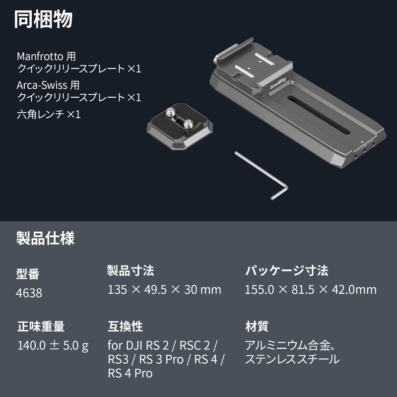 - 【For DJI Gimbal】SmallRig Quick Release Plate for Manfrotto 4638 is specially designed for DJI RS 2/RSC 2/RS3/ RS 3 Pro/RS 4/RS 4 Pro