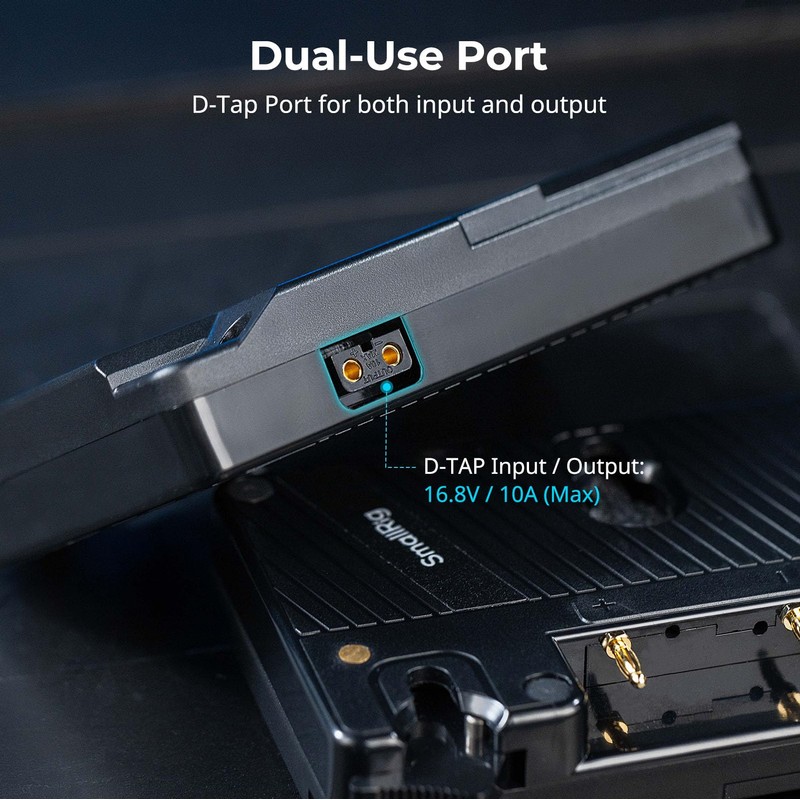 - D-TAP Port for Flexible Power Input and Output: The included D-Tap port supports both input and output, enabling flexible power connections and ensuring compatibility with a wide range of devices, from cameras to lights and other accessories.