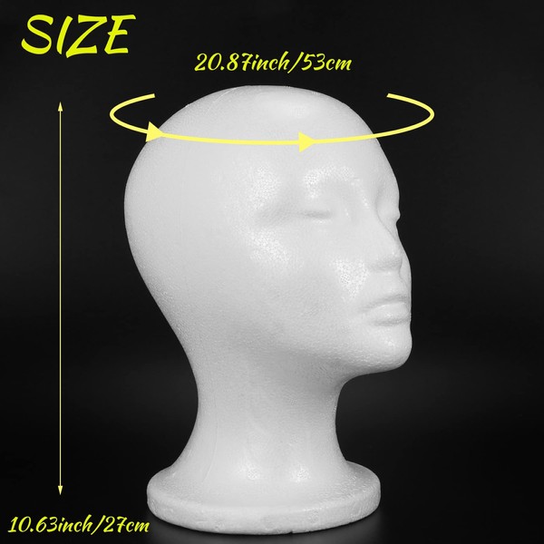 - ✅【Model size】: The white foam female model head circumference is about 53cm, and height is about 27cm