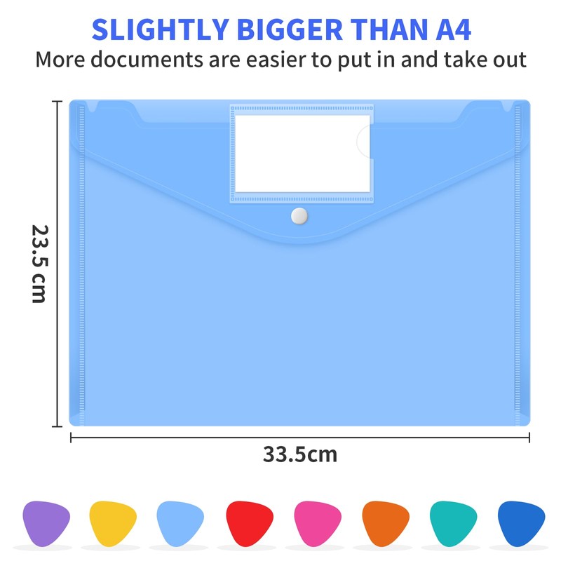 - 【HIGH QUALITY FOLDERS】The a4 plastic wallets with popper are made of high quality PVC, sturdy and reusable. The size is designed to be slightly larger than A4, making it easy to put documents in and out of the folder
