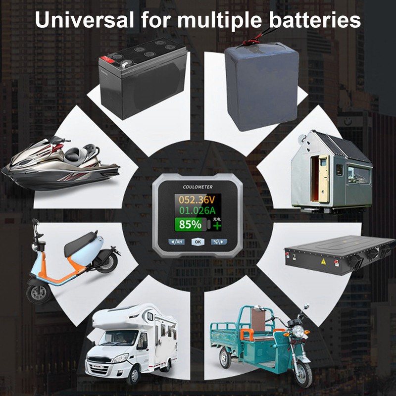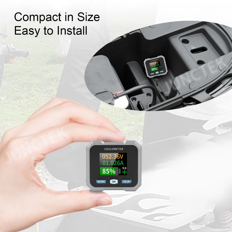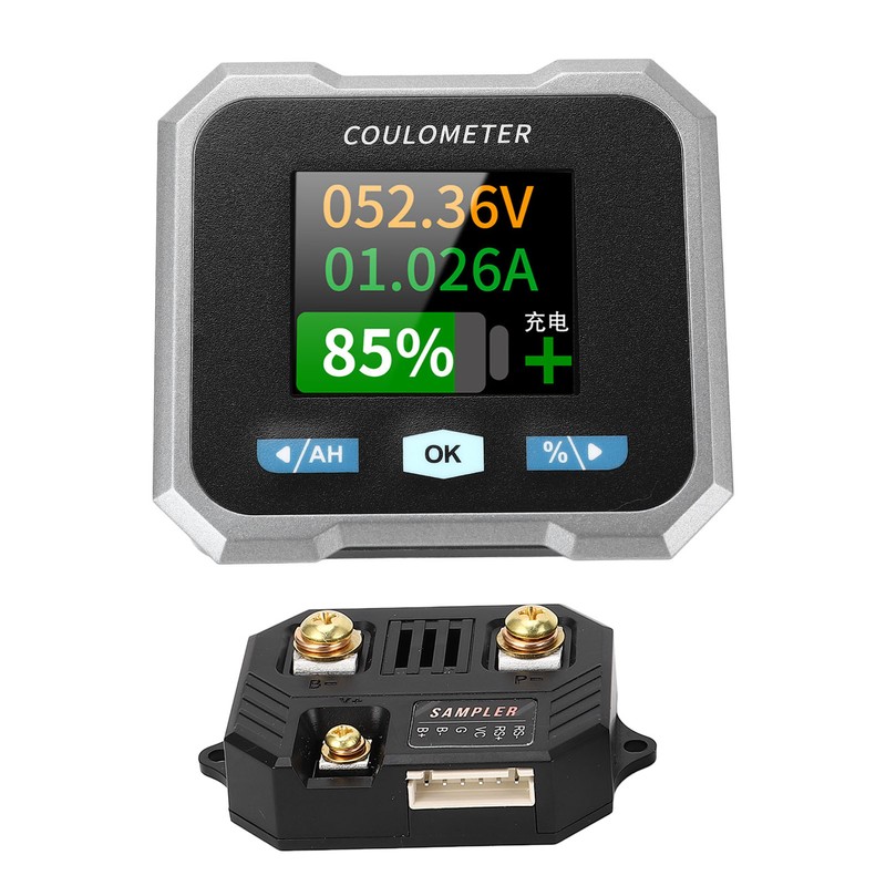 1、Smart Battery Monitor: Compatible with 10‑100V 0‑50A batteries, suitable for acid, lithium iron phosphate, lithium ion, and ni hydrogen batteries, widely used in RVs, cars, electric motorcycles, boats, and other battery applications. 2、Multifunctional Accuracy Measurements: Power, voltage, current, remaining capacity, charge and discharge, estimated charge and discharge time, capacity percentage, all displayed clearly on the screen for easy reading. 3、BT Monitoring via Phone: Up to 10 meters BT distance, download and install the app according to the manual, connect via BT on the app to view all relevant data and set functions on your phone. 4、1.8 Inch HD Color LCD Screen: Optimized interface with larger and clearer text, tactile silicone keypad for smoothly operation and quick response, enhanced comfort and touch feel. 5、Versatile Mounting Options: Can be embedded or mounted with various brackets, comes with handlebar bracket for stable installation, shunt can be securely installed with the built in bracket. Screen fixed with card slot (detailed installation instructions provided in the manual).