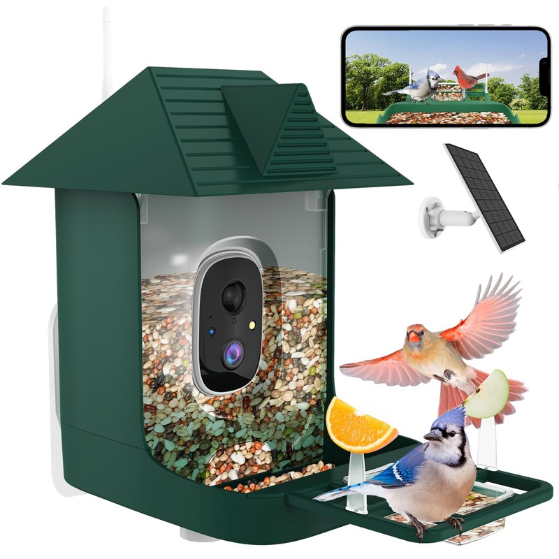 Smart Bird Feeder with Camera,Solar Powered,Waterproof Outdoor WiFi Bird House with Camera,Built in AI Birds Identification,Auto Records FHD Birds Videos to Cloud Storage,Ideal Gift for Mom and Dad